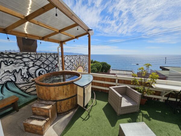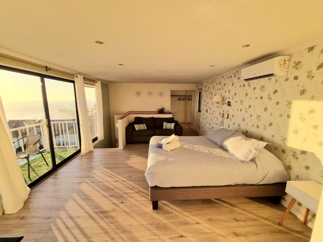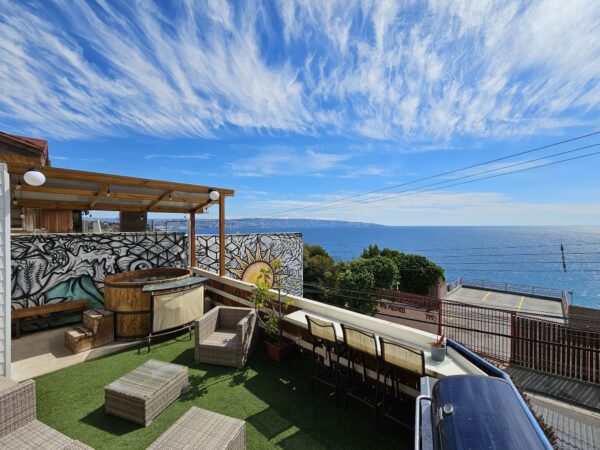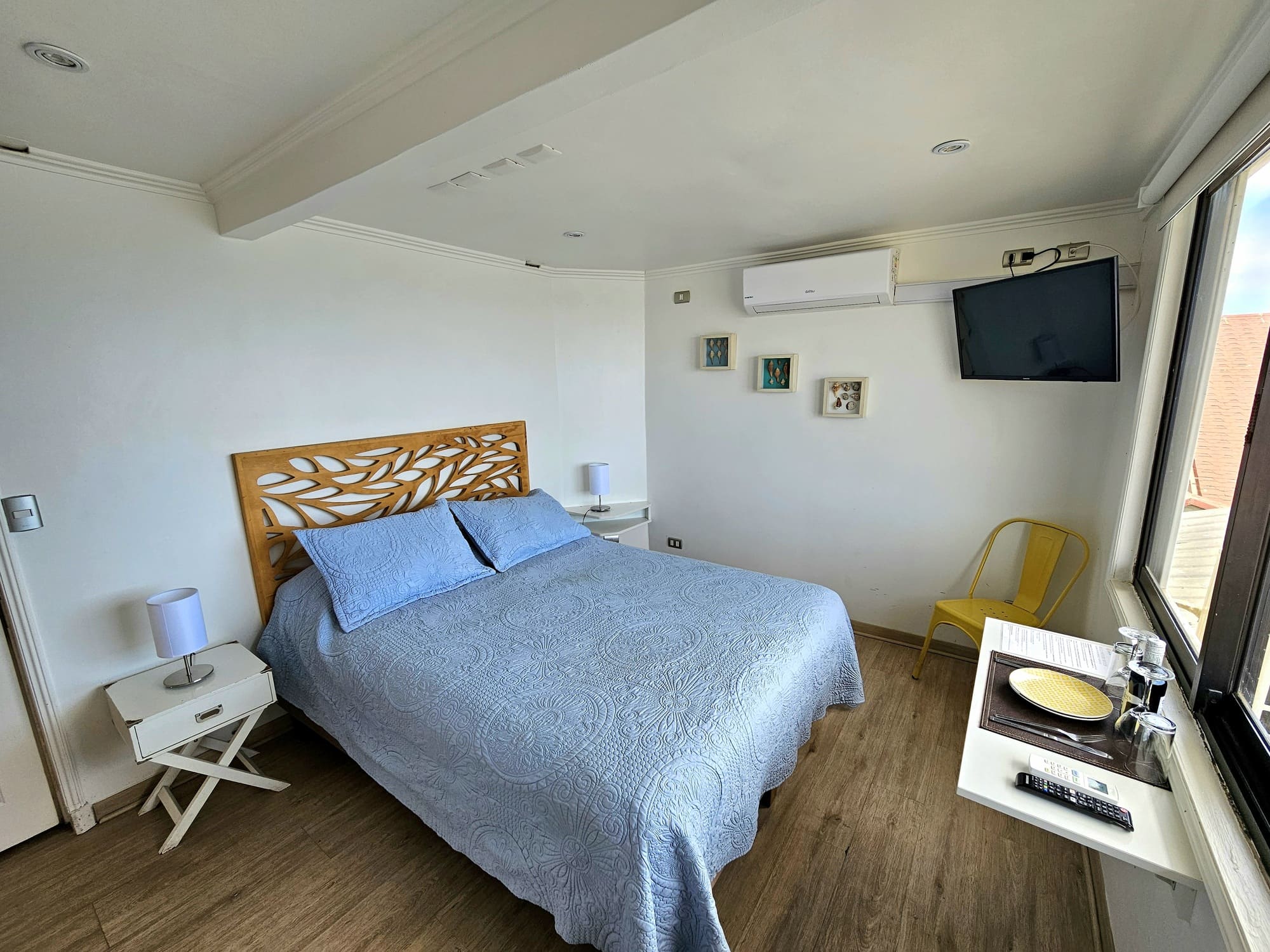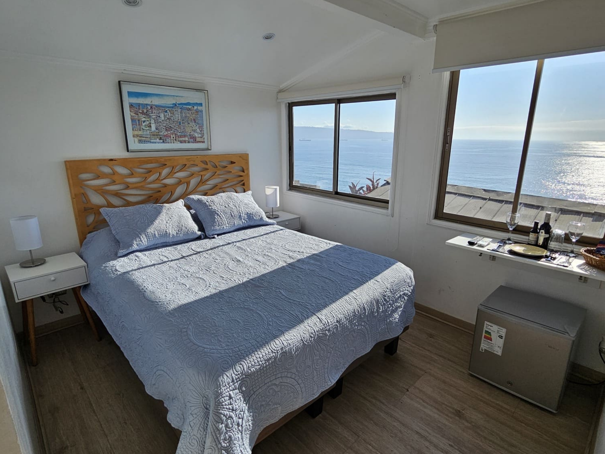 Habitación cálida ubicada en todo en tercer piso de nuestro Hostal con hermosa terraza con vista al mar y jacuzzi.