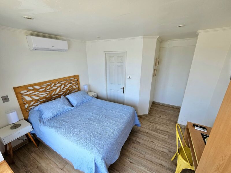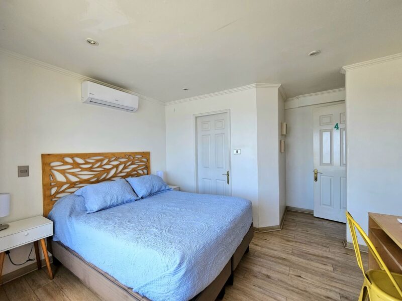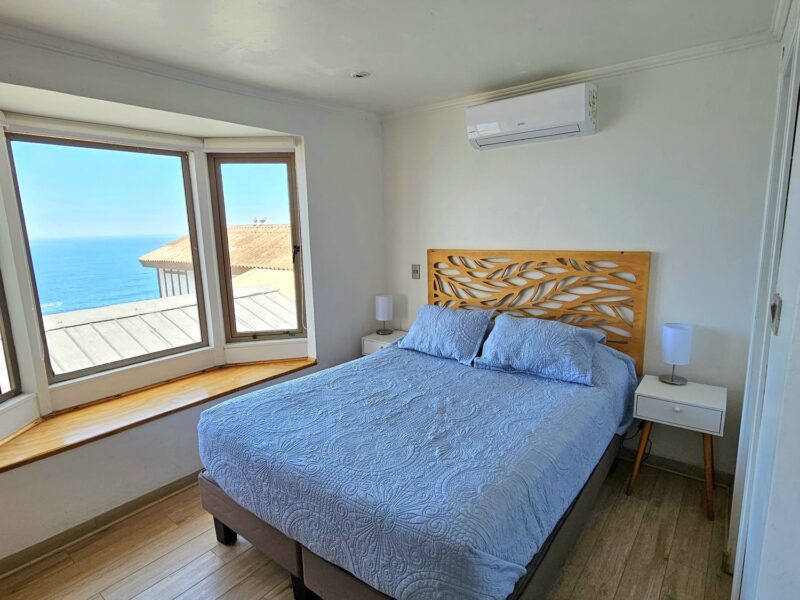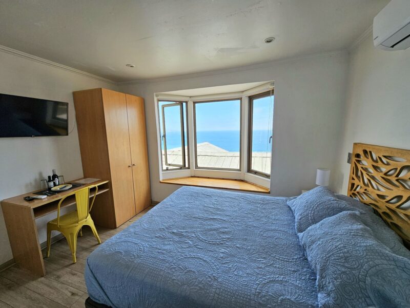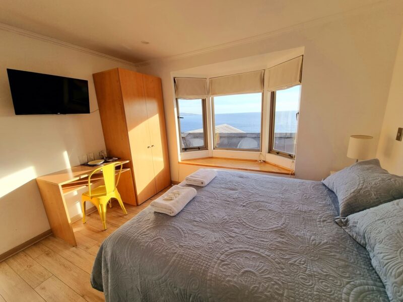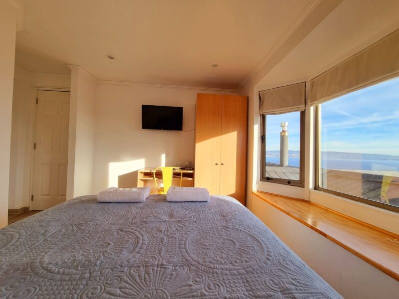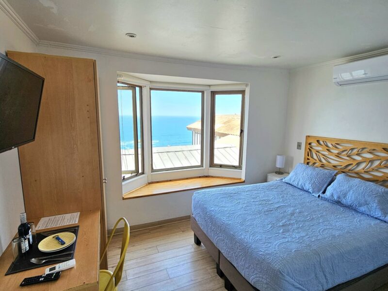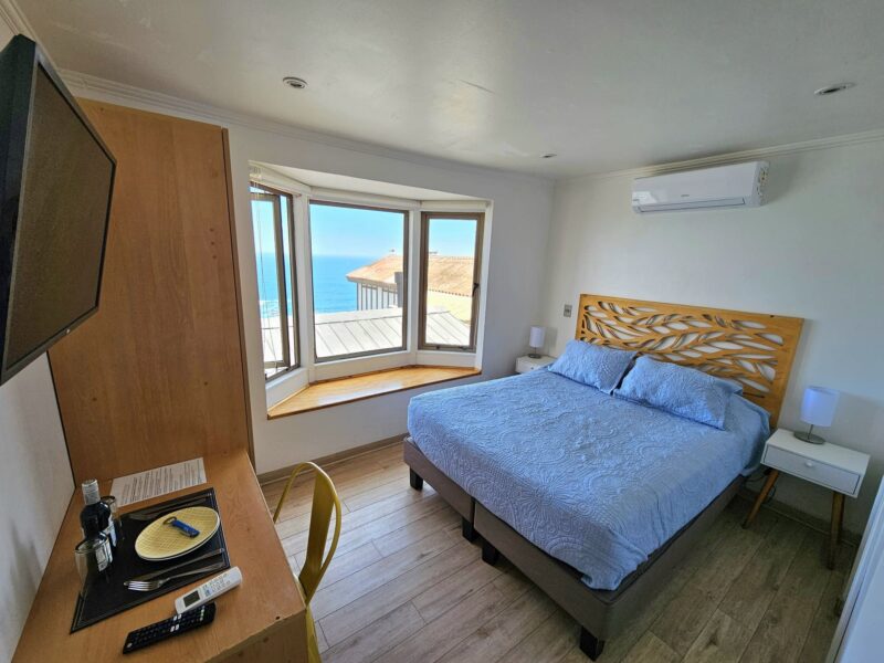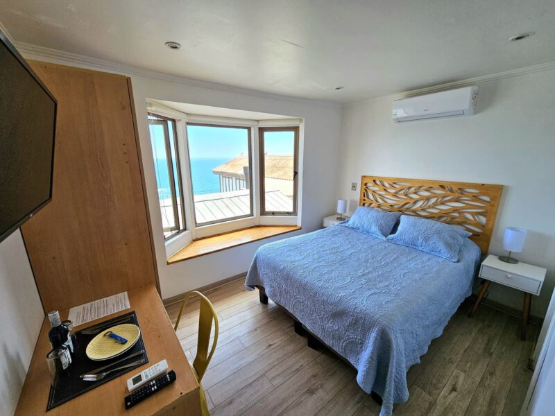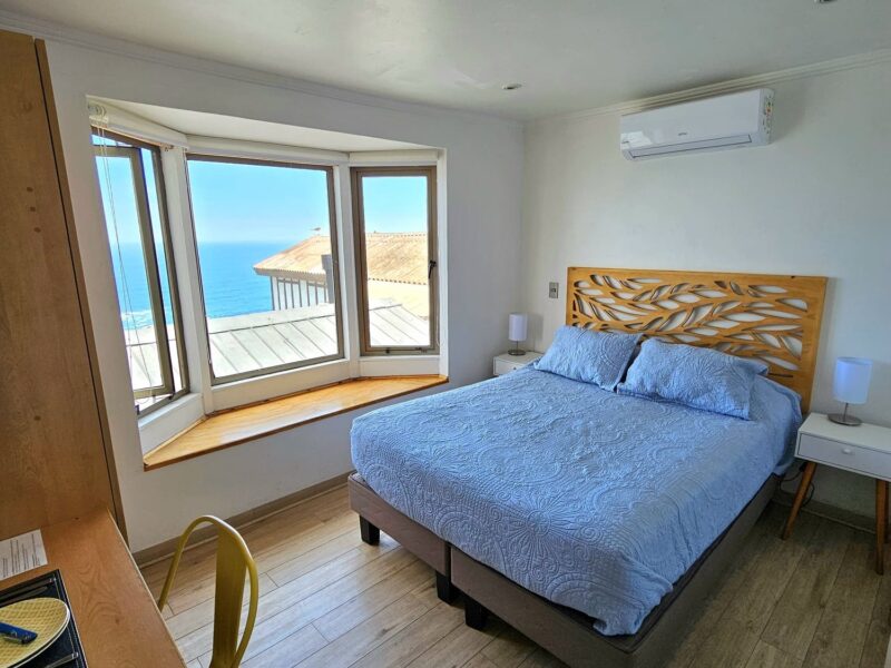 Ubicada en el segundo piso, es una habitación doble con baño privado, cama matrimonial y hermosa vista al mar.
